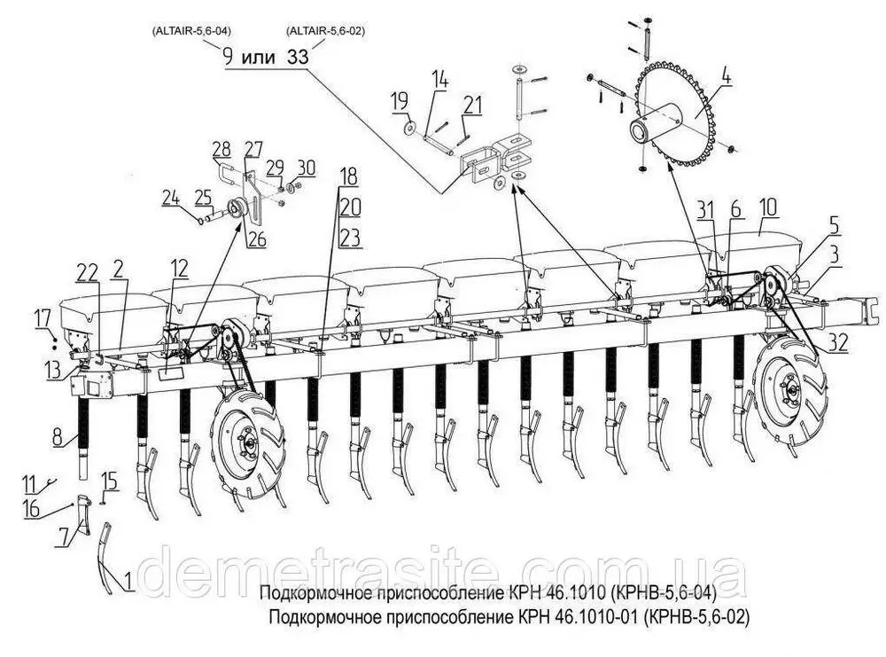 Підгодівля культиватора КРНВ-5,6, КРНВ-4,2. Пластикові банки, редуктора, долота з розтрубами, шарніри, рамки, зірочки, ланцюги, тукопроводи