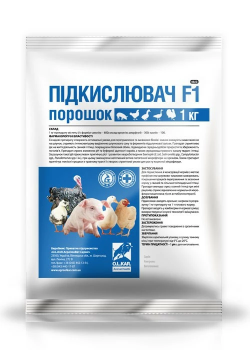 Для підкислення та консервування кормів з метою профілактики шлунково-кишкових захворювань, поліпшення процесів травлення і засвоєння корму у свиней і птиці. Препарат зменшує стрес у свиней та птиці при зміні раціонів; сприяє відновленню нормальної мікрофлори кишечнику після антибіотикотерапії.
