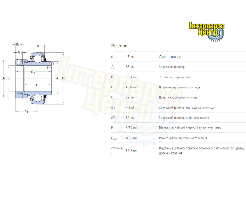 Підшипник комбайна Claas, John Deere, Massey Ferguson. Вставний підшипник з ексцентриковим стопорним буртом і подовженим внутрішнім кільцем.