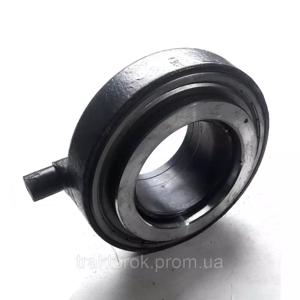 Вижимний підшипник (відвідка) 36-1604065 в зборі - призначений для двигуна Д-65 тракторів ЮМЗ та забезпечує ефективне вимикання зчеплення, передаючи зусилля з педалі на важелі корзини зчеплення. Вузол складається з корпусу відвідки, шарикового вижимного підшипника та втулки, які працюють в умовах високих навантажень, тертя та забруднення фрикційними частинками, забезпечуючи надійну роботу трансмісії та довговічність механізму зчеплення.