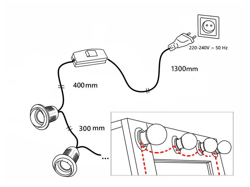 Підсвітка гримувального дзеркала світлодіодна врізна 10 шт. E27 з ручним вимикачем, чорний колір від LEDUA — це стильне та ефективне освітлення для вашого дзеркала, яке ідеально підходить для використання в косметичних процедурах, макіяжі або догляді за шкірою. Чорний колір корпусу підсвітки додає елегантності та сучасності, що робить її відмінним вибором для салонів краси, ванних кімнат та інших приміщень, де потрібне якісне освітлення.