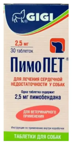 Пімопет 2.5 мг №30 таблеток GIGI (лікування серцево-судинної недостатності у собак) (термін до 10.2027 р)