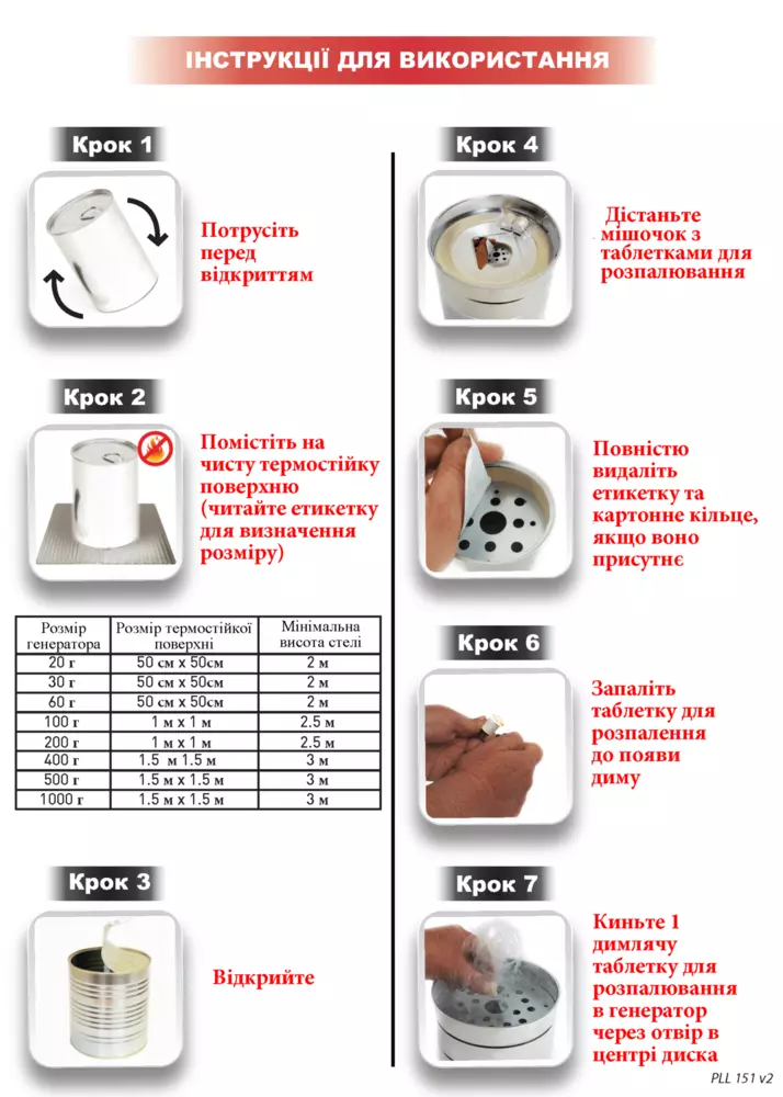 • При поджигании более одного генератора или в ситуациях, когда невозможно покинуть территорию сразу после зажигания, следует одеть соответствующую защитную одежду (комбинезон) и подходящую дыхательную аппаратура.
