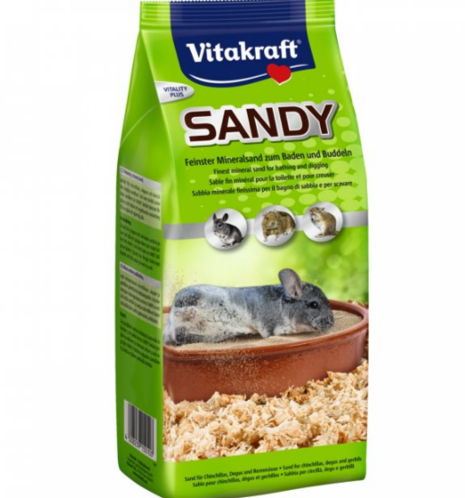 Догляд за шерстю шиншил та її підтримка в хорошому стані потребує щоденного прийому пісочних «ванн». Після купання в спеціальному піску Sandy, шерсть шиншили стає напрочуд шовковистою і м'якою. Vitakraft Sandy Special для шиншил - це ультра дрібний пісок з аппульгіту спеціальної круглої форми, для особливо дбайливого догляду.
