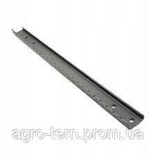 Планка ліва сталева напрямна похилого транспортера із зазубринами та отворами для кріплення для зерноприбиральних комбайнів Claas. Довжина — 604 мм, загальна ширина — 45 мм, вага — 1.22 кг. ОЕМ номери 650864, 000650864, 000650864.1, 000650864.2