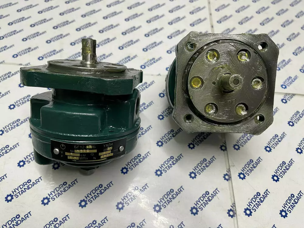 Насоси пластинчасті нерегульовані з постійним напрямком потоку робочої рідини типу БГ12-4 застосовуються для подавання оливи під тиском у гідросистеми верстатів та іншого обладнання машинобудівної галузі. Виготовлення насосів БГ-12-41Б, БГ-12-41А, БГ-12-41, БГ-12-42: однопотоковий. Насоси серії БГ 12-4 застосовуються як мастильні в гідросистемах пресів спільно з радіально-поршневими насосами типу . Робочою рідиною для цих насосів є мінеральні оливи кінематичної в'язкістю 17-213 сС за температури від +10...+50 °C. Клас чистоти робочої рідини не грубіший за 12 ГОСТ 17216-71. Тонкість фільтрації 25 мкм. Номінальна частота обертання вала 1500 об/хв. Рекомендовані марки олій (а також мінеральні оливи, що мають такі ж властивості та кінематичну в'язкість):