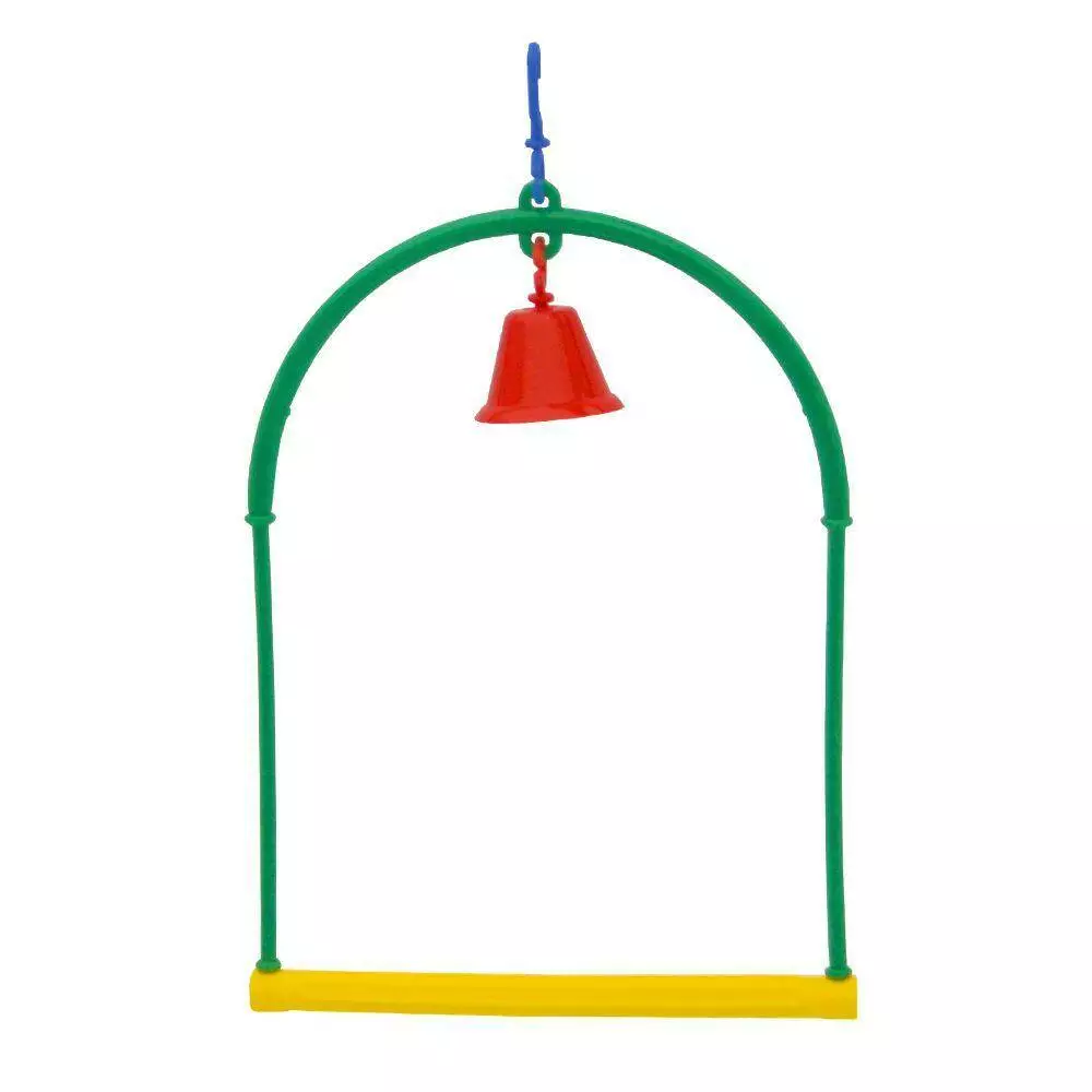 Кольорова гойдалка з дзвіночком для папуг виготовлена з безпечної, високоякісної пластмаси. Є необхідним атрибутом у пташиній оселі, оскільки дає можливість розважатись та зацікавлює рухатись пернатих жителів. Відтак, гойдалка є і розвагою і тренажером для папуг бо активний птах - це здоровий птах.