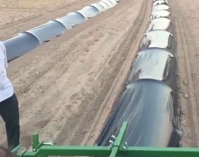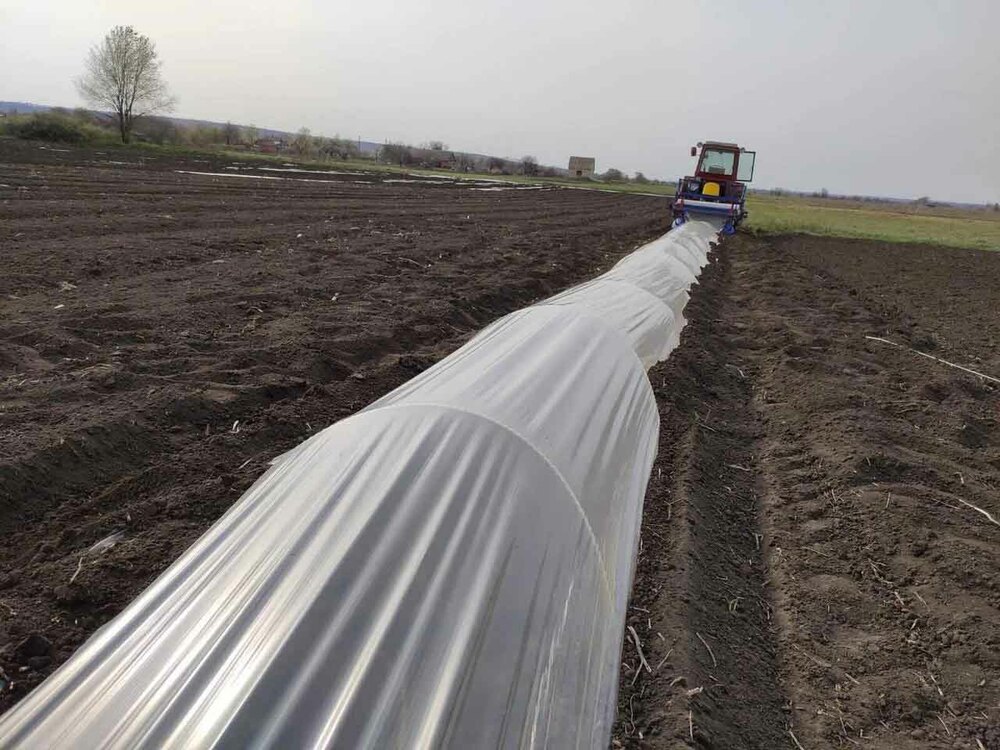 навесные машины для формирования парников (пленочных тоннелей) на дугах за один проход устанавливают в почву дуги и накрывают их пленкой. Специальные направляющие разматывают и натягивают пленку, в то время как боковые окучники прикапывают края пленки.