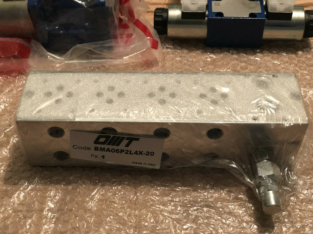 Двосекційна високоякісна перехідна (монтажна) плита модель BMA06P2L2X-20 з вбудованим клапаном тиску виробництва OMT, Італія з умовним проходом 6 мм Cetop 3, підходять для імпортних, а також вітчизняних гідророзподільників Ду=6 мм, як-от РХ06, Ве6, РЕ6.3, 1РЕ6, РХ6, ПЕ6. Максимальний тиск — 300 барів, максимальне подавання оливи — 40 л/хв.