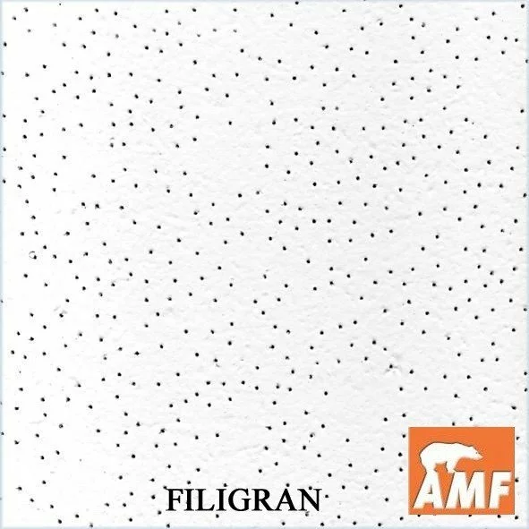 Плита стельова AMF «Філігран» (Німеччина). Класичний дизайн, перевірена якість. Товщина плити 13мм. Матеріал пресовані базальтове волокно.Пліта стельова AMF «Філігран» (Німеччина). Класичний дизайн, перевірена якість. Товщина плити 13мм. Матеріал пресовані базальтове волокно. Також Ви можете замовити послуги з монтажу та реконструкції Вашого об'єкту. Замовляючи у нас «матеріал + робота», Ви можете розраховувати на додаткові знижки.