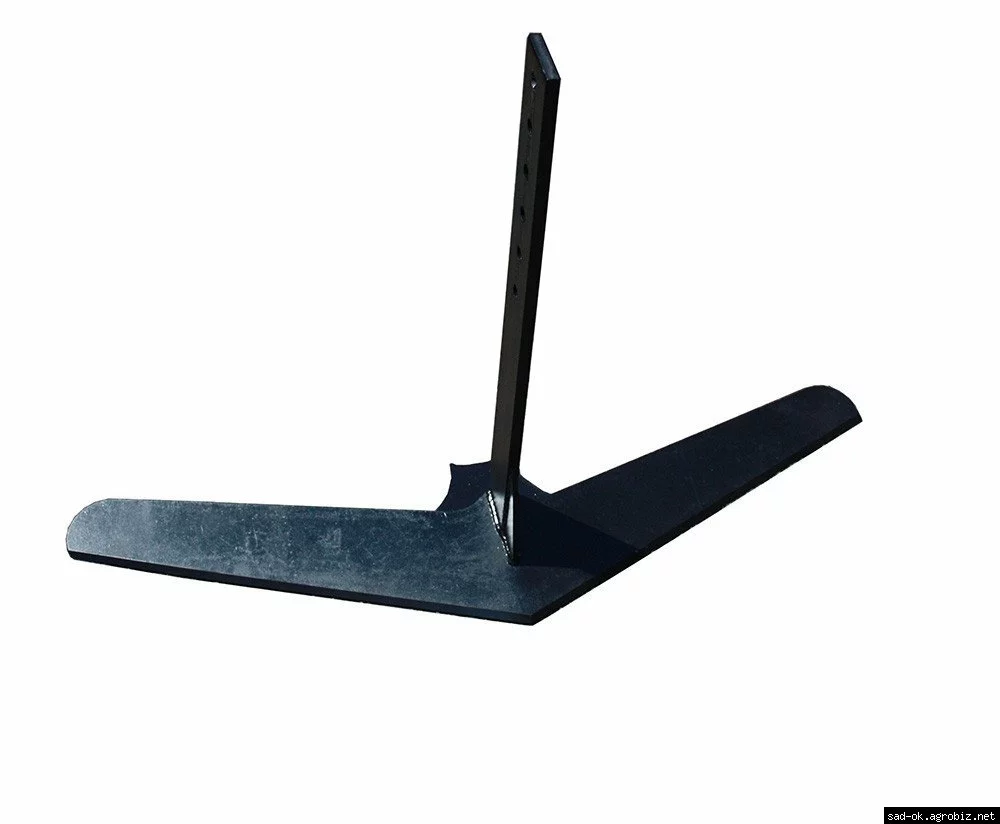 Плоскорез. Агрегатируется с мотоблоками при помощи регулировочной сцепки (приобретается отдельно). Предназначен для безотвального выравнивания и прополки почвы, для сплошной обработки почвы, также позволяет обрабатывать широкие междурядья овощных культур.