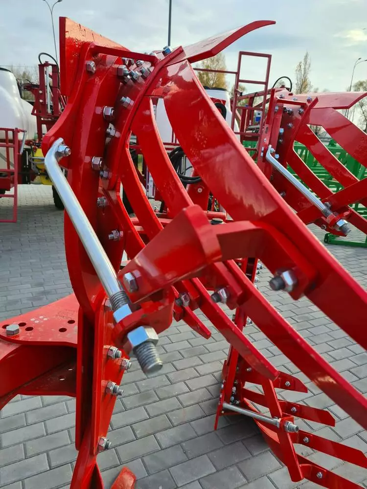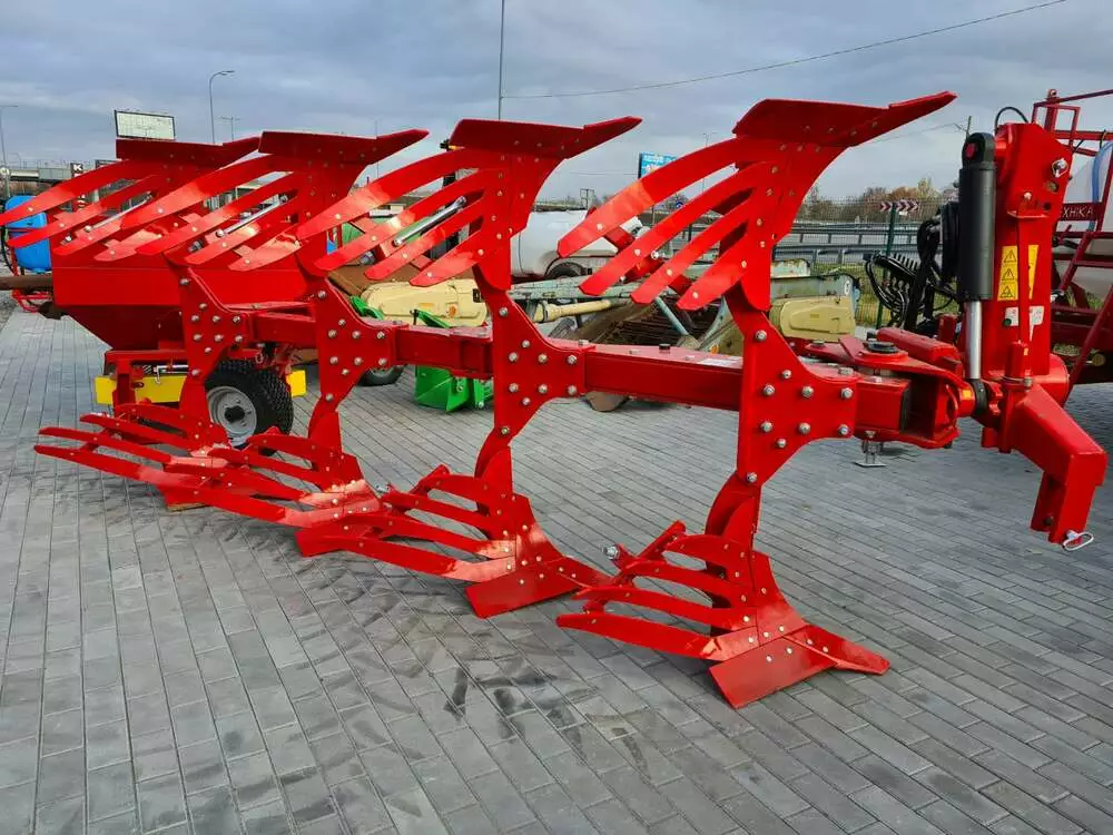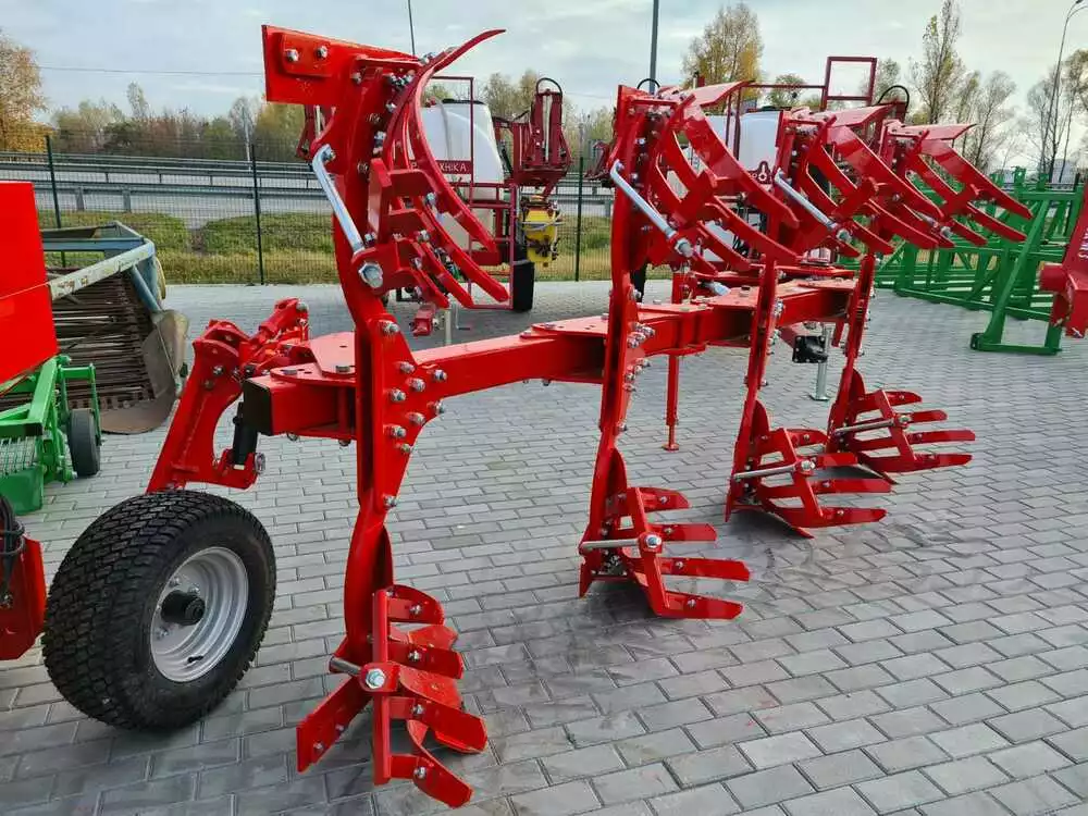 У базовій комплектації оснащений углоснимом і подовжувачем відвалу. Всі робочі органи проходять багатоступеневу термообробку. Виробництво плугів майже повністю роботизоване (зварювання, гнуття, термообробка, фарбування).