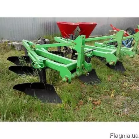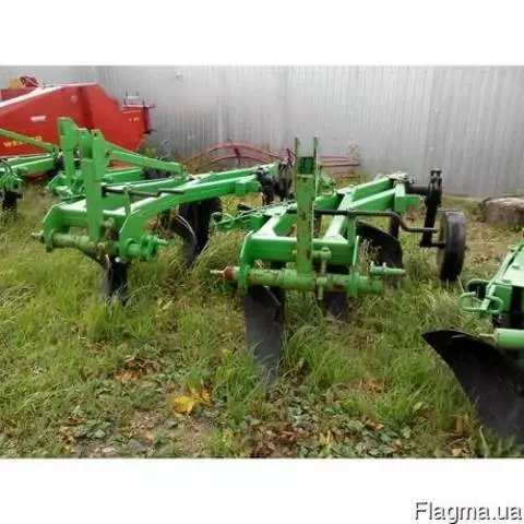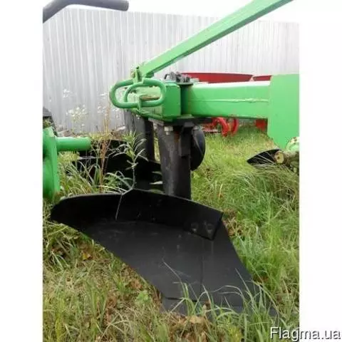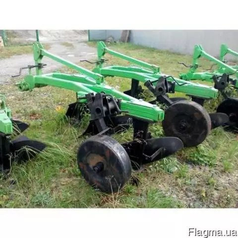 Плуг оснащён винтовым механизмом регулирования ширины захвата первого корпуса. Глубина работы может быть отрегулирована при помощи стального опорного колеса.