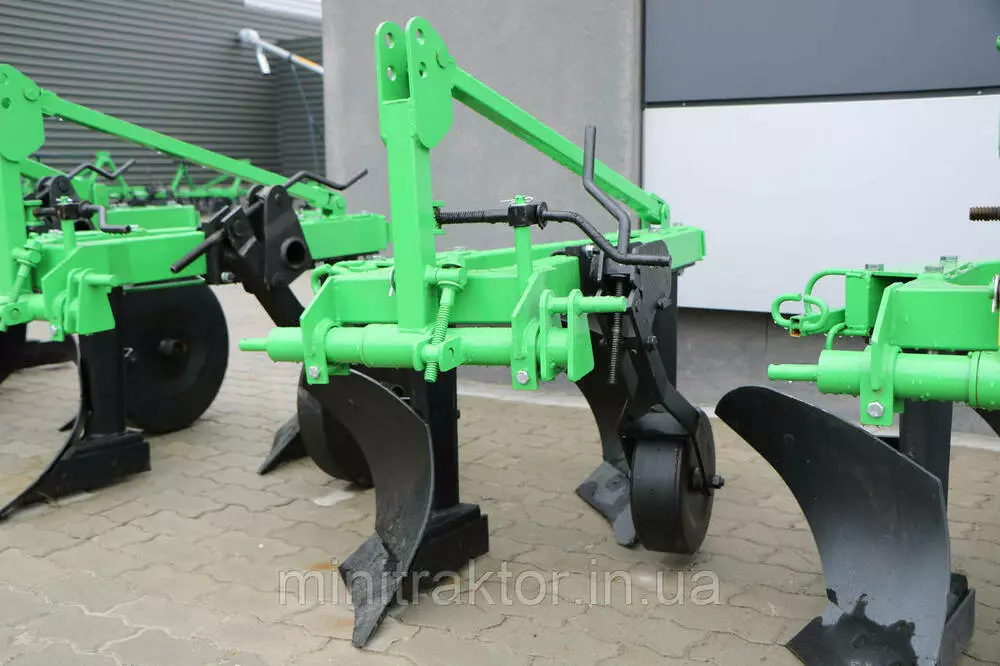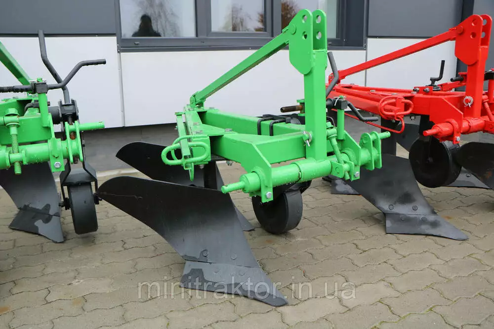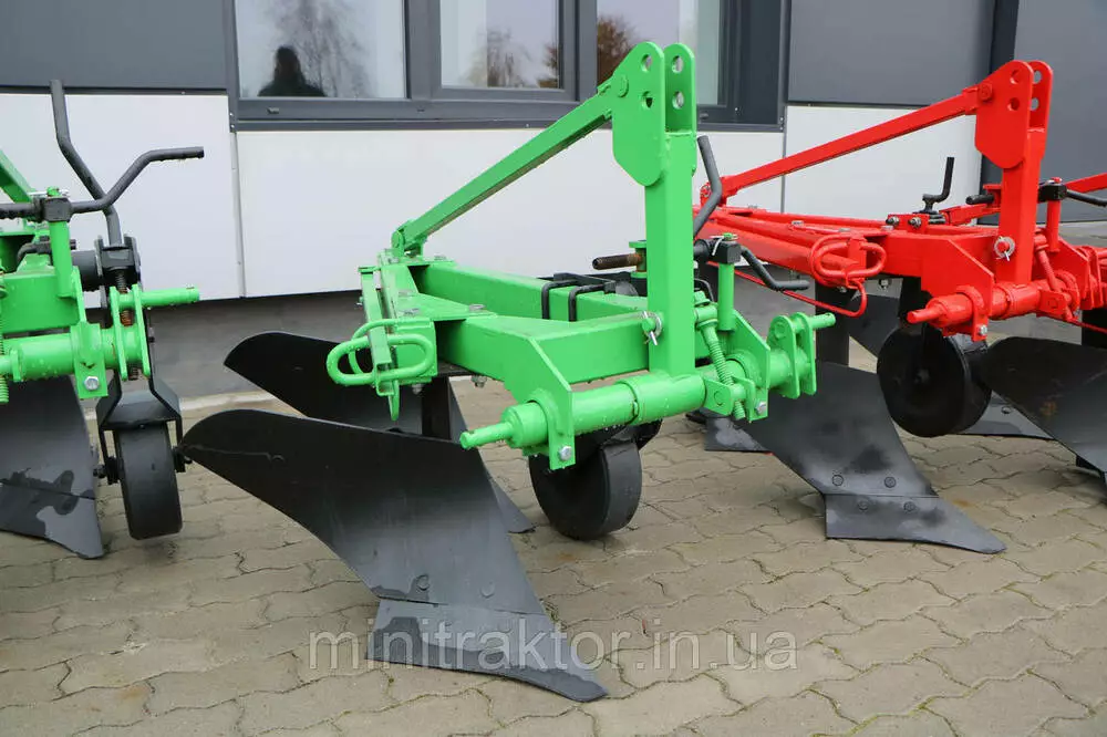 Плуг навішується на трактор на трактор за допомогою трьохточкової системи навіски.