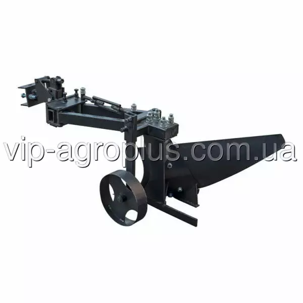 Корпус плуга встановлений на шарнірну раму, яка дозволяє регулювати положення плуга щодо колії за допомогою талрепа. Кутове положення плуга виставляється за допомогою регулювального гвинта на причіпному вузлі. Параметри причіпного вузла стандартні для мотоблоків з двигуном водяного охолодження і мототракторів.