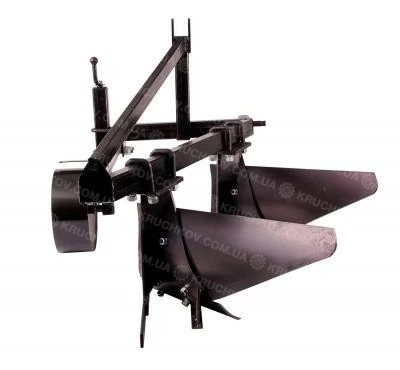 Плуг двухкорпусный для мини-трактора предназначен для агрегатирования с тракторами оснащёнными трёхточечной навесной системой.