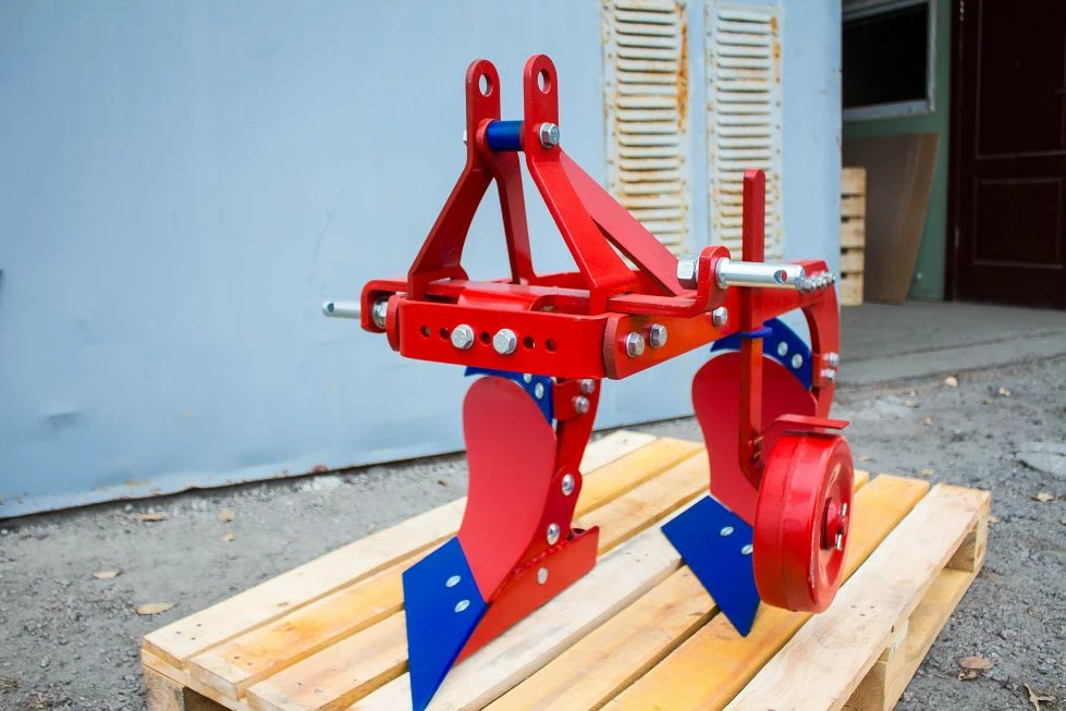 Плуг, для пахоты почв. Крепится к трактору с помощью 3-х точечной сцепки сзади трактора, и регулируется смещение плуга, Оси-Ф22мм.