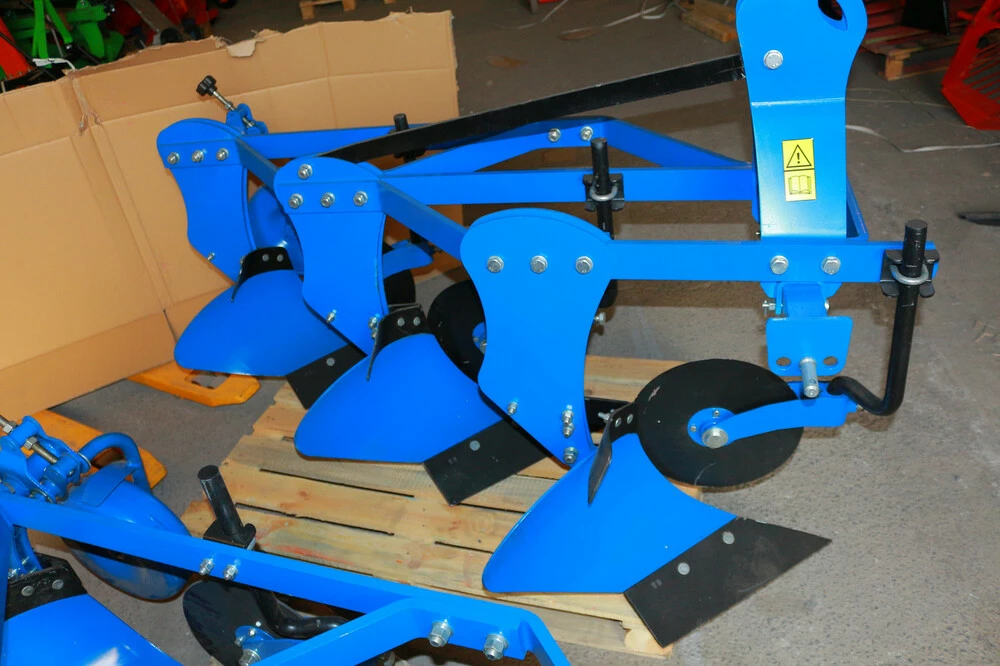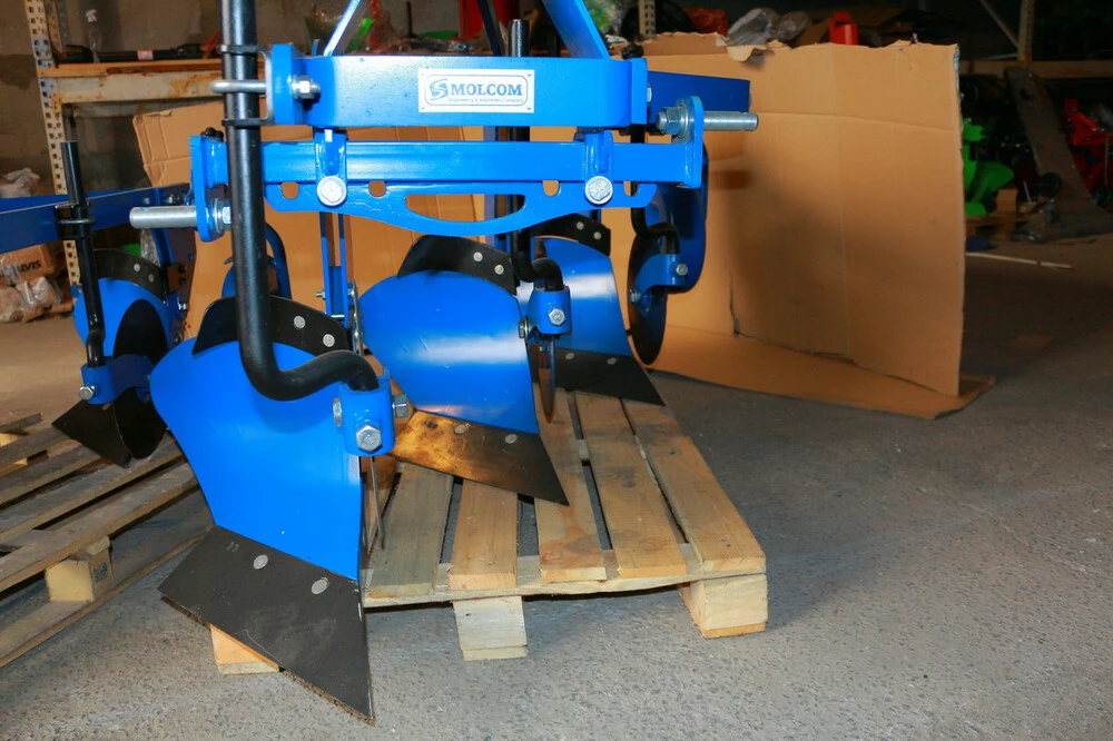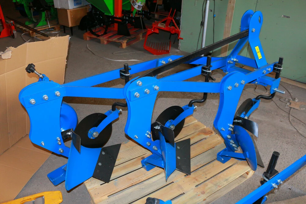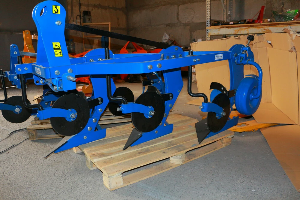 и других. Усиленный плуг, для пахоты глиняных и трудных почв. Крепится к трактору с помощью 3-­х точечной сцепки сзади трактора, ширина 50 см.