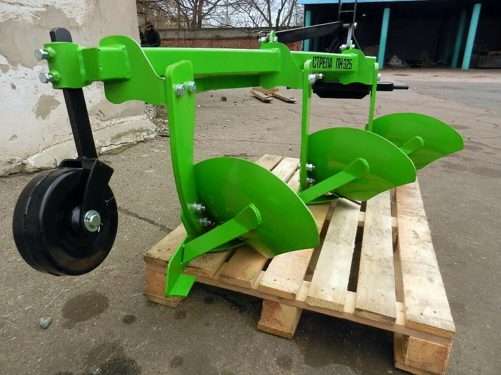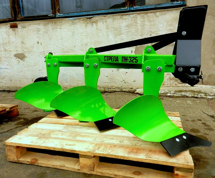 Плуг модель СТРЕЛА ПН-3-25 предназначен для минитрактора и трактора, плуг для пахоты глиняных и трудных почв. Крепится к трактору с помощью 3-­х точечной сцепки сзади трактора.