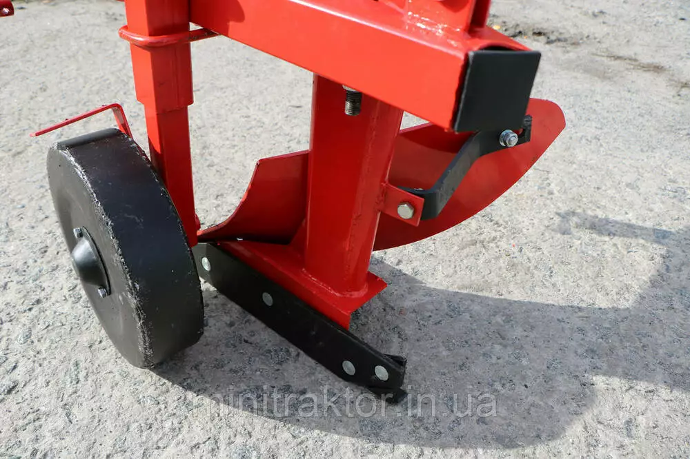 • глибина оранки може бути відрегульована за допомогою регулювального гвинта, що розташований на стійці опорного колеса