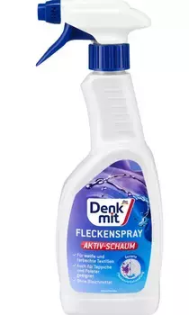 Спрей від плям Denkmit підходить для цільової попередньої обробки білого та кольорового текстилю. Він видаляє навіть важкі плями від фруктів, овочів, кави, червоного вина і жирних плям, а також від олії, сонцезахисного крему, морозива, макіяжу, помади. Він навіть пом'якшує засохлі плями та бруд, у тому числі на комірі та манжетах. Активна піна очищає всі текстильні матеріали, оббивні покриття та килими, що миються без відбілювачів.