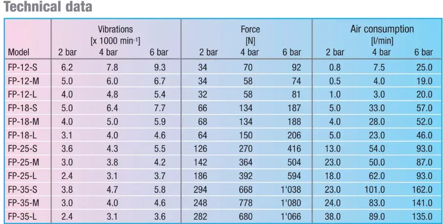 Пневматичні поршневі вібратори серії FP створюють лінійну вібрацію з нескінченно змінною амплітудою і частотою
