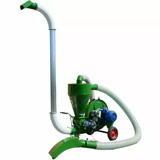 Принцип дії пневматичного транспортера зерна сосуще-нагнітального типу (за образом пилососа): оператор вставляє гнучкий рукав у бурт зерна, що знаходиться на кузові автомобіля, землі чи ангарі. За допомогою розрядження, створеного повітряним потоком вентилятора високого тиску, зерно потрапляє у всмоктуючий циклон пневматранспортера, де, гравітаційно обсипавшись вниз, прогумованими лопатками дозатора подається в магістраль, що нагнітає. Далі зерно виштовхується з пневматранспортера і подається сталевими трубами в призначене місце.