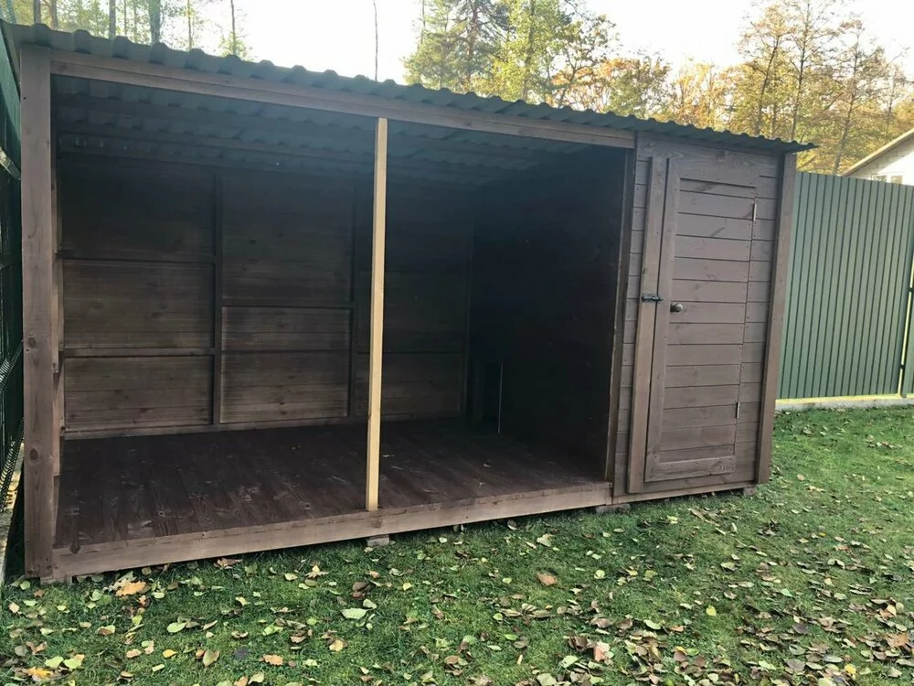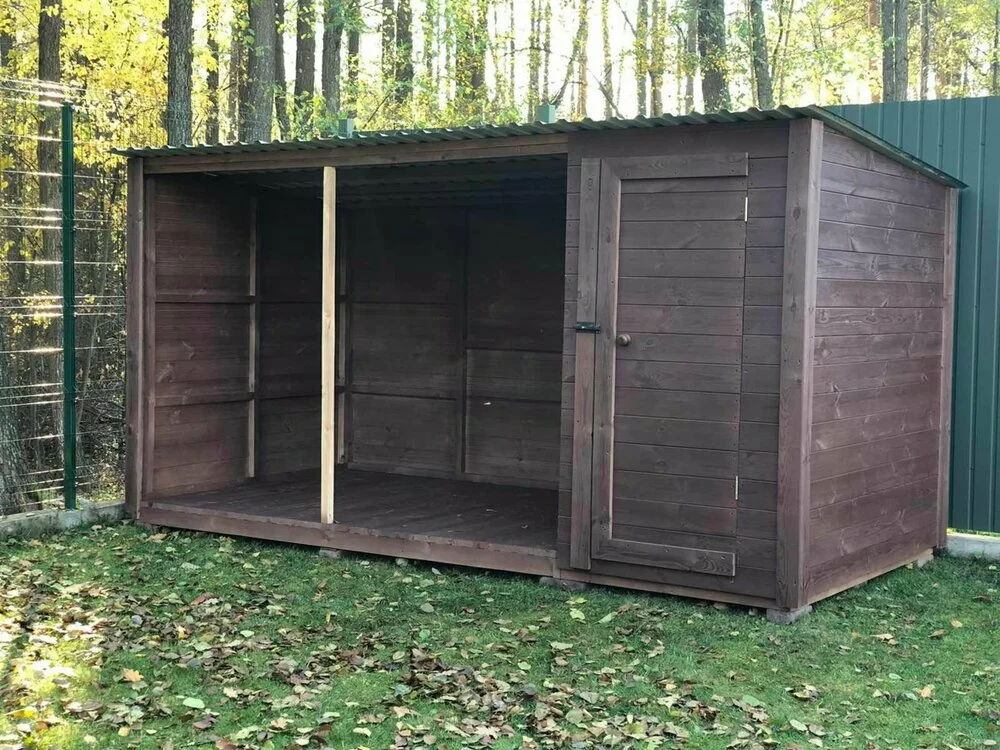 Компанія Karkasstroy займається виготовленням побутівок для дачі та не тільки. Вашій увазі пропонуємо відкриту побутівку з хозблоком. Її можна використовувати для зберігання дров (відкрита частина) та господарського інвентарю.