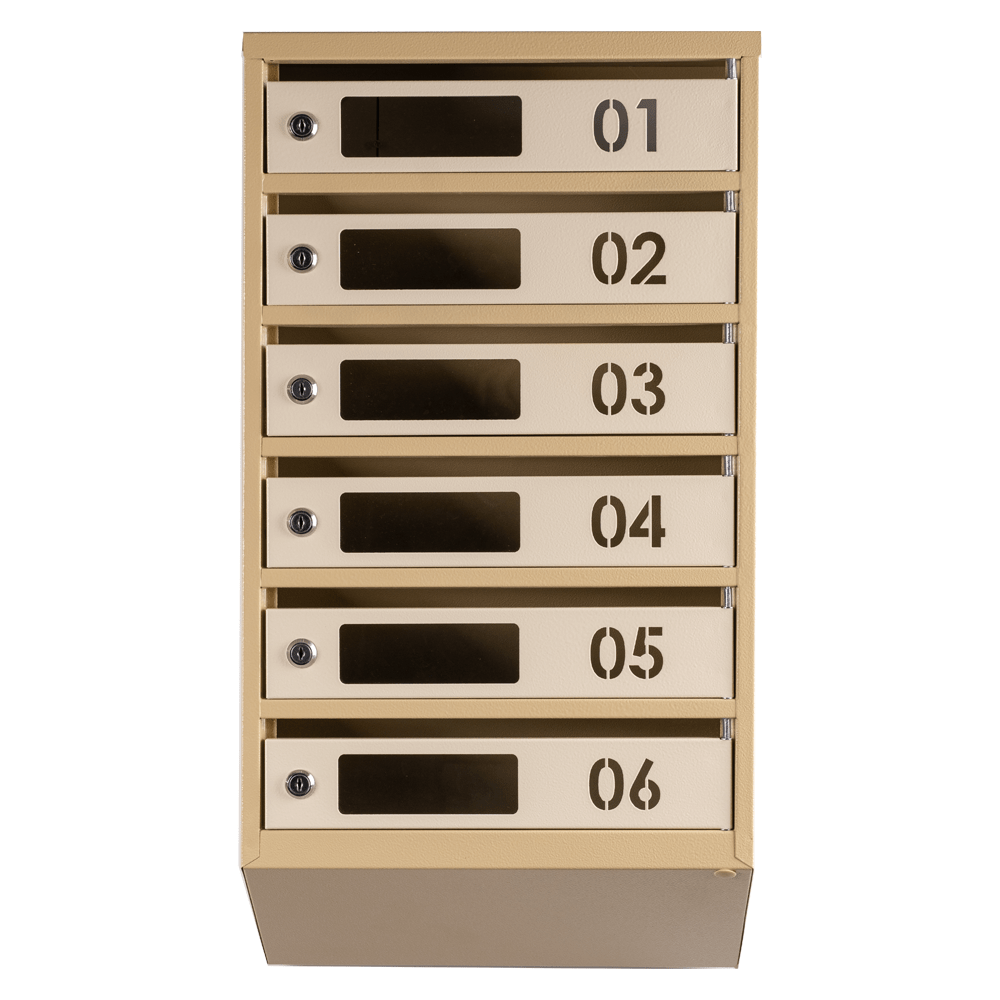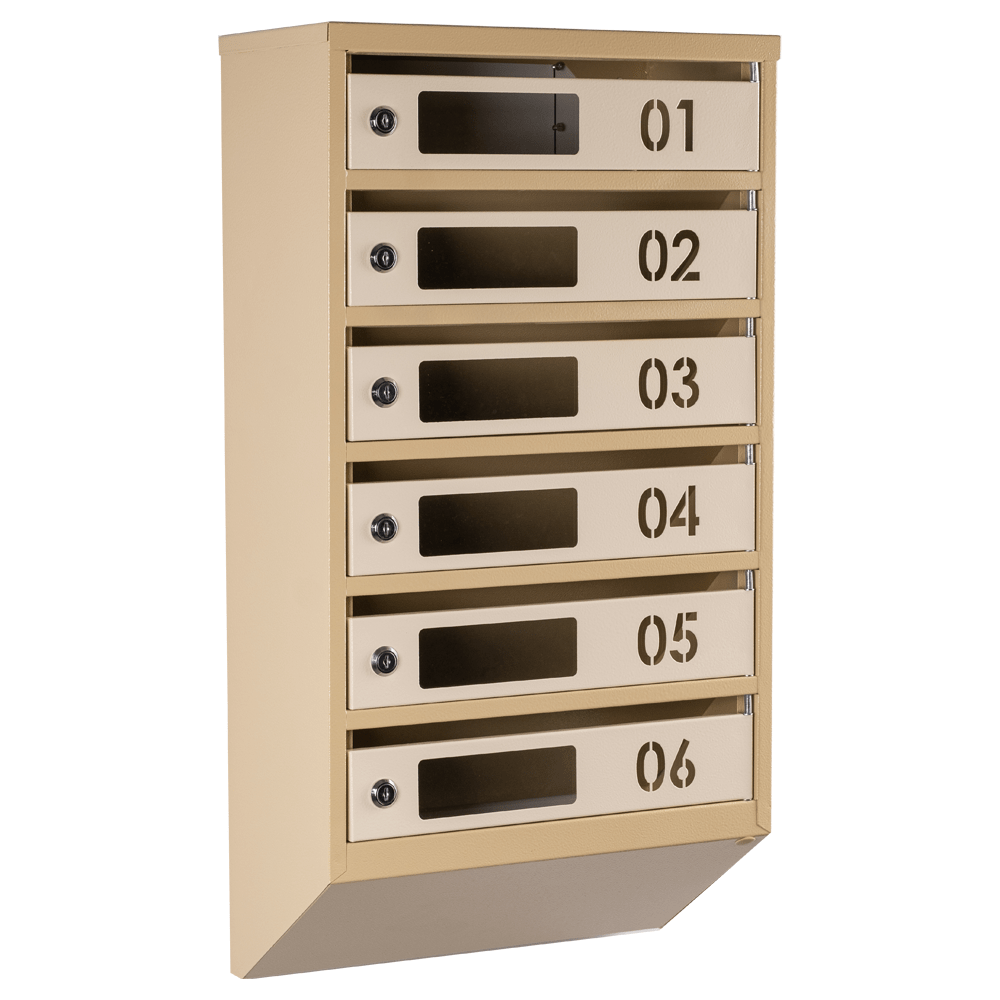 Кожна з шести секцій володіє достатньою місткістю для прийому пошти різних розмірів та типів. Щілинний тип дверцят дозволяє легко витягувати пошту без необхідності відкривати всю скриньку, забезпечуючи комфорт та зручність користувачам.