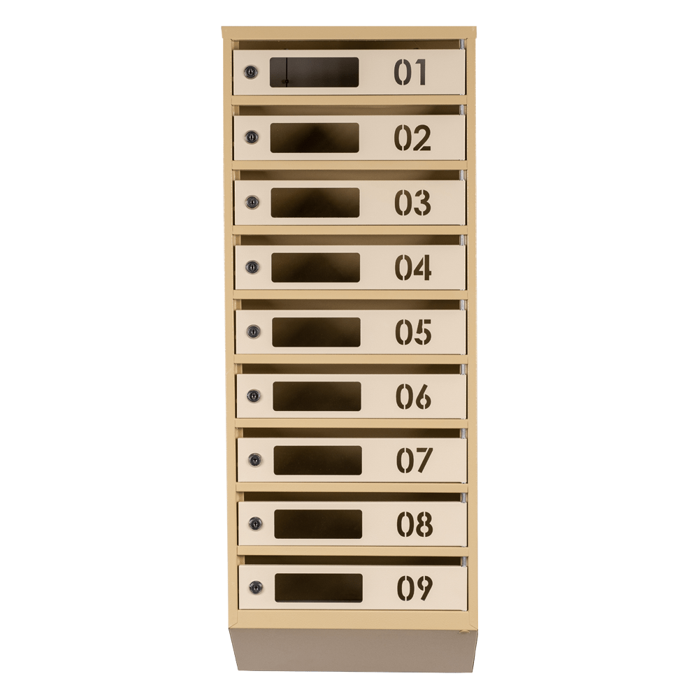Кожна з дев'яти секцій має достатньо місця для прийому листів та поштових відправлень різних розмірів. Вбудований замок з двома ключами гарантує безпеку та конфіденційність листів мешканців будинку.