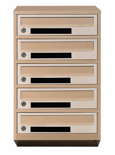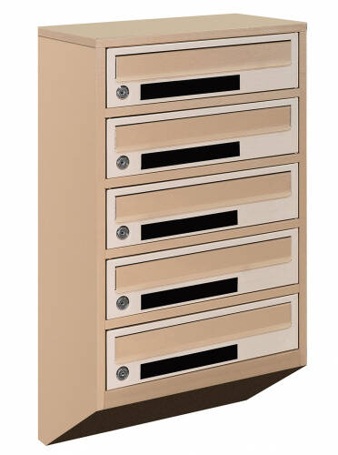 LEVMETAL Е1-05.C - це стильний та надійний поштовий ящик із 5 косими секціями, призначений для використання в багатоквартирних будинках. Модель E1-C бежевого кольору від LEVMETAL додасть вашому входу теплоти та класичного шарму.
