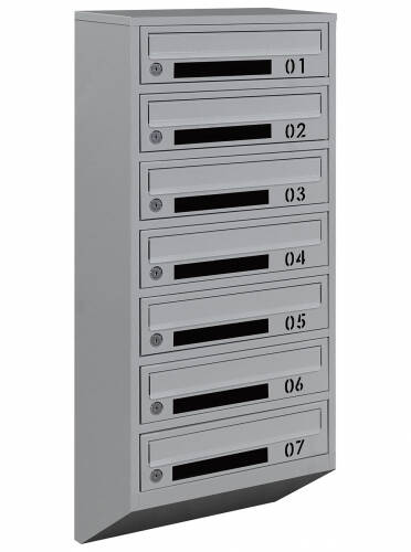 Косі секції з щілинами та клапанами забезпечують зручний доступ для вставки та виймання пошти, створюючи ефективний процес розподілу. Дверцята обладнані віконцем для перевірки кореспонденції та вирізаним номером квартири, що полегшує отримання листів.