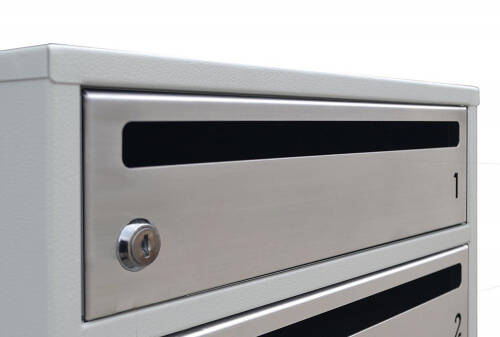 Поштовий ящик LEVMETAL багатосекціний Е2-03.F призначений для установки в багатоквартирних будинках. Має три косі секції зі щілинами для отримання пошти. Дверцята обладнані вирізаним номером квартири та щілиною для зручності використання. Замок з двома ключами забезпечує високий рівень безпеки для отримання кореспонденції. Корпус виготовлений із сталі товщиною 0,7 мм, а дверцята з нержавіючої сталі, що забезпечує довговічність та стійкість до зовнішніх умов. Порошкове фарбування корпусу забезпечує естетичний вигляд та захист від корозії. Виробник - Україна, що гарантує високу якість та відповідність стандартам.