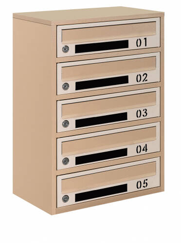 Поштовий ящик LEVMETAL багатосекціний Е2-05.D на 5 секцій в бежевому кольорі – ідеальний вибір для організованого та зручного отримання пошти в багатоквартирних будинках. Ця модель поєднує в собі елегантний зовнішній вигляд та високу функціональність.