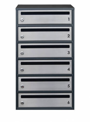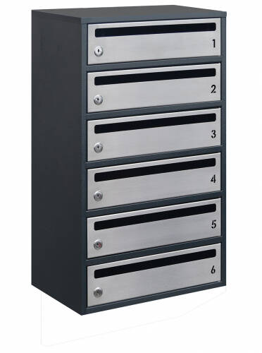 Поштова скринька LEVMETAL Е2-06.F на 6 квартир Ант-сірий 675x390x250