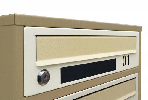 Поштовий ящик LEVMETAL багатосекціний Е2-09.D - ідеальний вибір для будинків з 9 квартирами. Модель E2-D у бежевому кольорі (RAL 1001/1015) поєднує в собі стиль, надійність та функціональність.