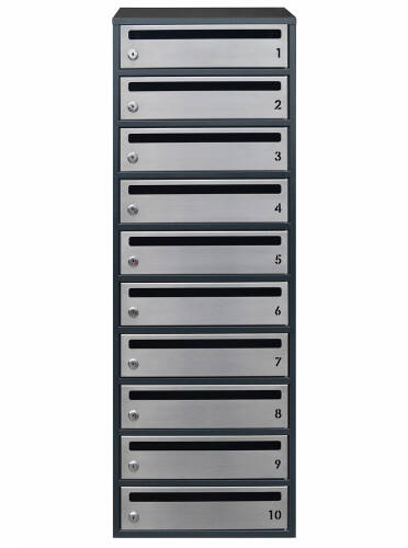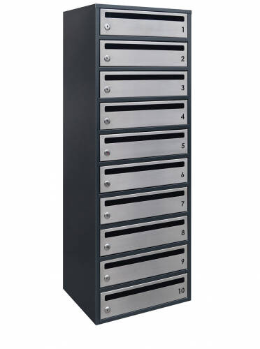 Поштовий ящик LEVMETAL багатосекціний Е2-10.F із 10 секціями в антрацит-сірому кольорі (RAL 7016) - це стильний та функціональний вибір для вашого багатоквартирного будинку.