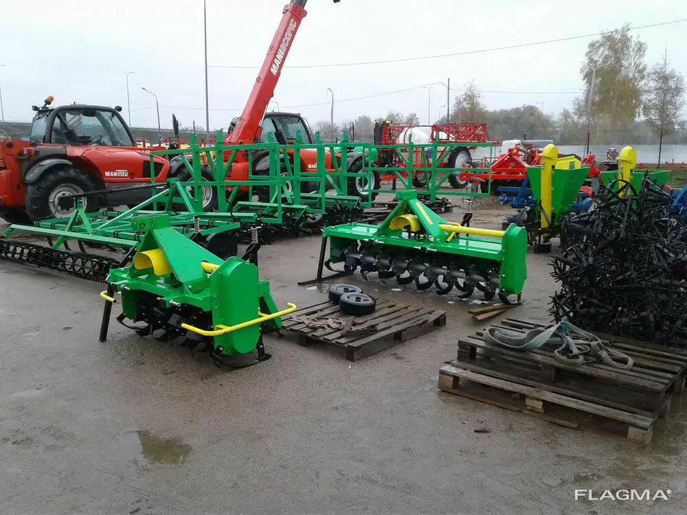 Садовая почвофреза используется для поверхносного рыхления и культивирования земли в садах, а также на участках, где обрабатывание почвы затруднено из-за нахождения там деревьев, кустарников, столбов и др. Гидравлическая система позволяет обходить препятствия сдвигая почвофрезу влево и вправо относительно оси трактора.