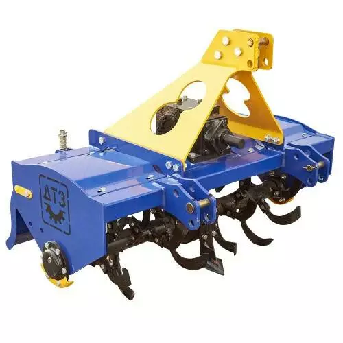 1. **Дроблення та перемішування ґрунту:** Ножі ротора розташовані по спіральній лінії, що забезпечує плавність роботи і ефективне дроблення верхнього шару ґрунту.