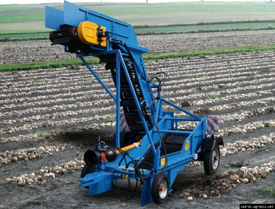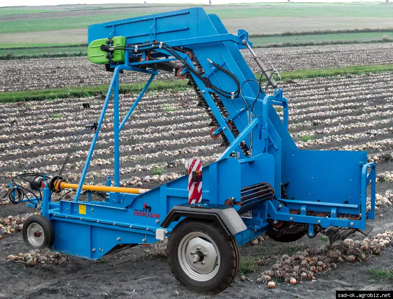 Подборщик подбирает с рядков высушенный лук и перемещает его на идущее рядом транспортное средство. Подборщик оборудован гидравликой-гидравлическое раскладывание к позиции работа транспорт, регуляция наклонения транспортной переноски лука на середину транспорта. Управление происходит с помощью гидравлического распределителя, находящегося в кабине трактора.