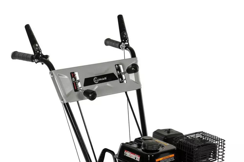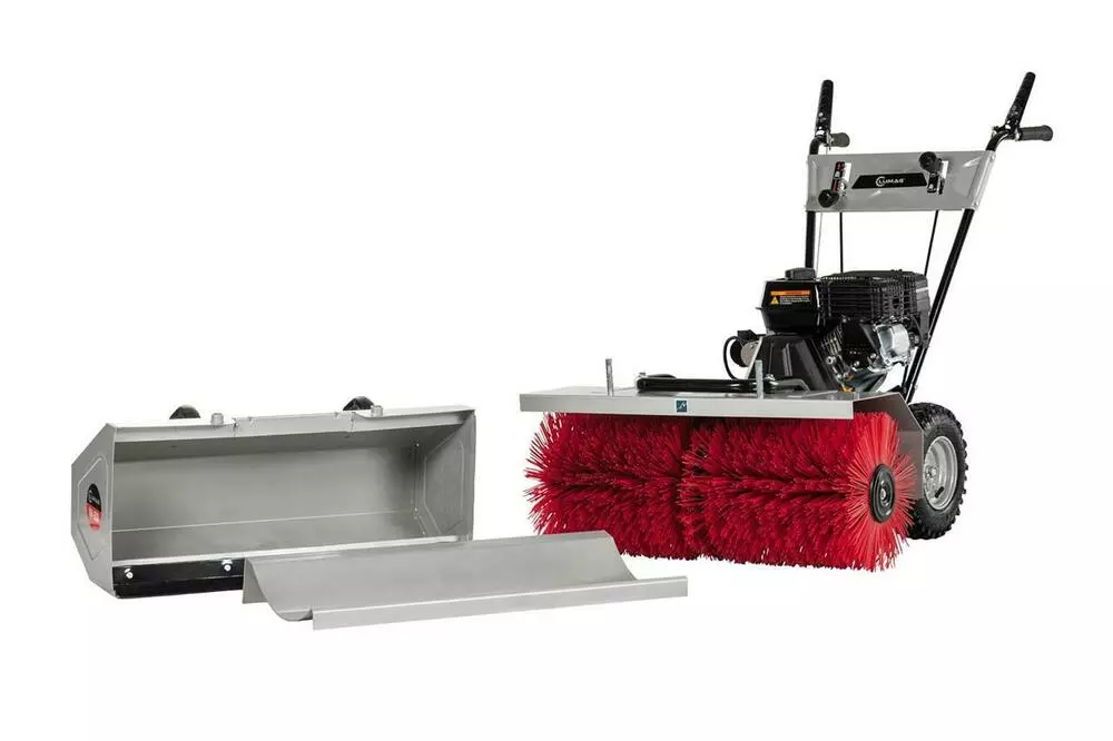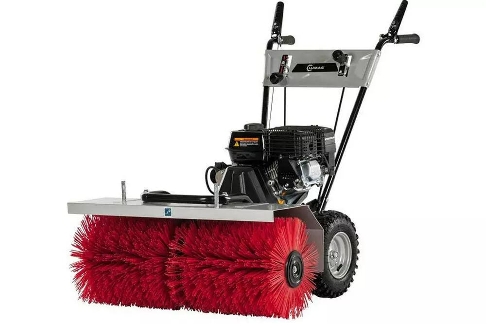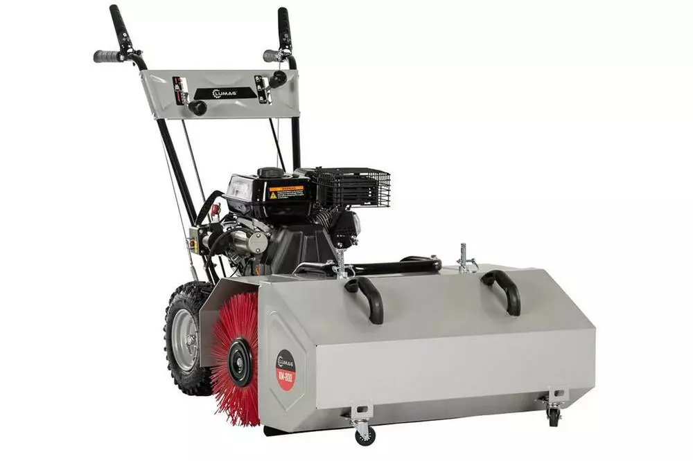 Lumag KM 800 это бензиновая подметальная машина для уборки больших площадей. С ее помощью убирают не только мусорные частицы, но и счищают свежий снежный покров.