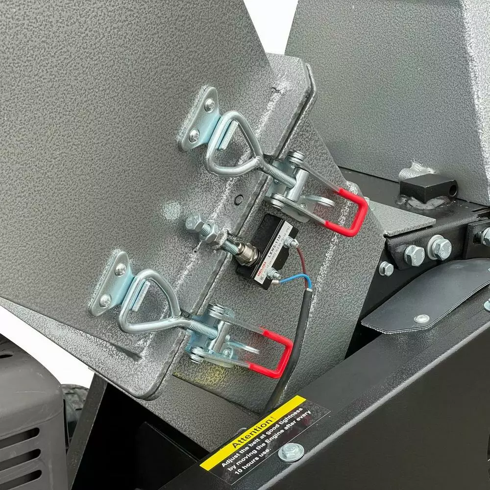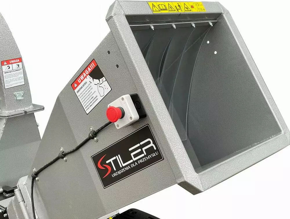 На жолобі встановлено аварійний вимикач. Це незамінний елемент будь-якого подрібнювача деревини. Підвищує комфорт та безпеку роботи.