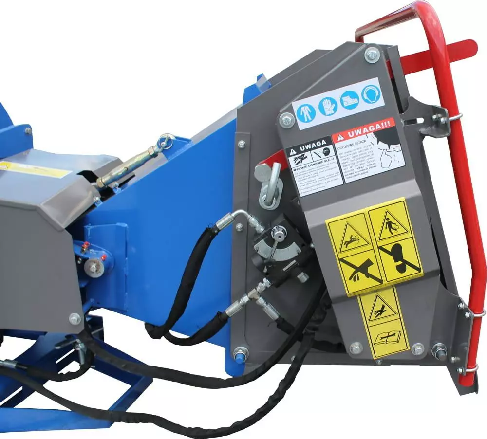 Механізм захоплення пиломатеріалу має плавний 10-ступінчастий регулятор швидкості захоплення, функцію втягування матеріалу та аварійну зупинку. Отримана тріска викидається через трубку, повернуту на 360 ° по відношенню до основи рубальної машини.
