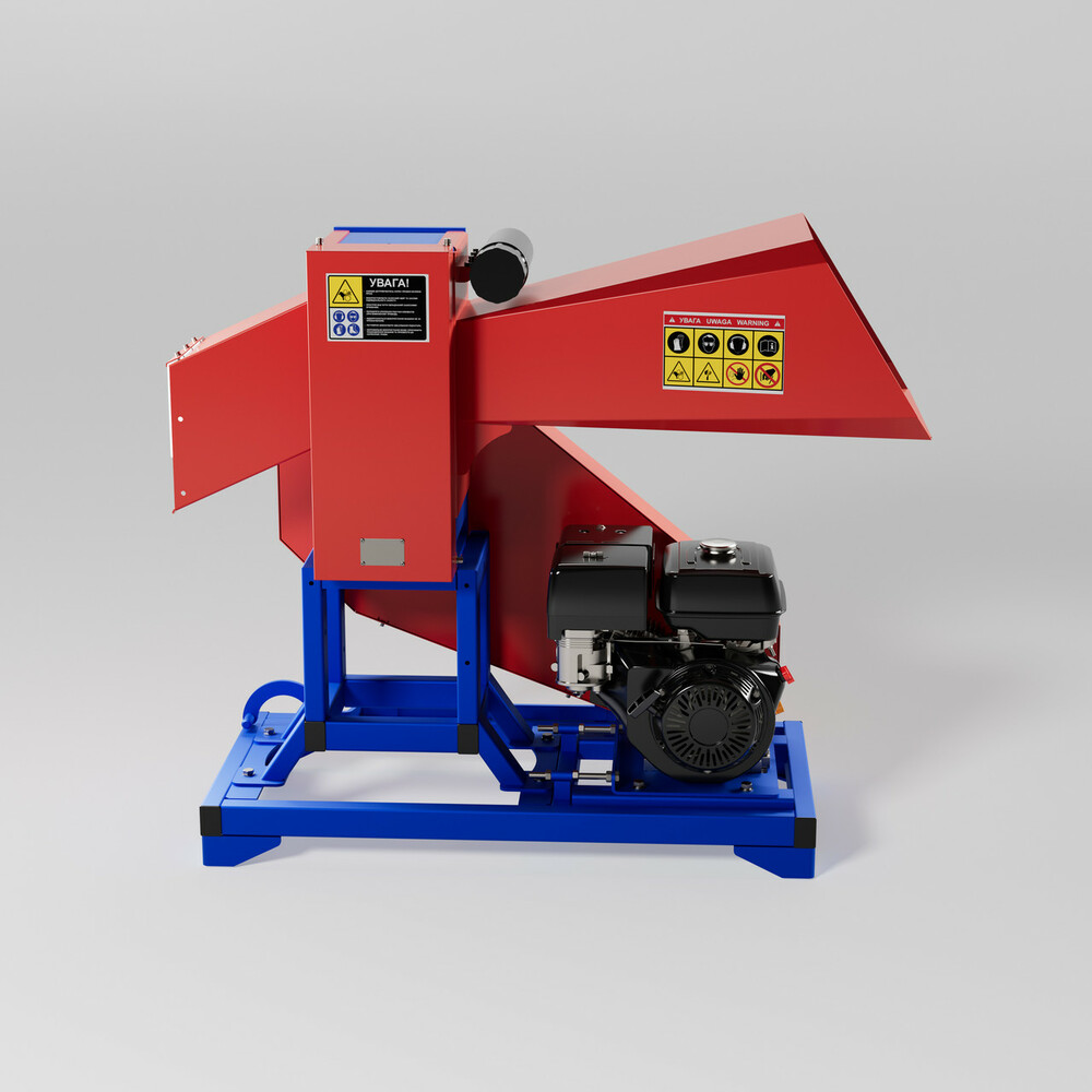 Подрібнювач гілок PG-120BD виробництва ТМ «Palche» призначений для переробки та подрібнення гілок, рейок та інших деревних відходів шляхом рубки на куски довжиною 9-18 см., що ідеальні для використання у якості палива для котлів, печей, камінів, а також для виробництва деревного вугілля. Модель даного подрібнювача PG-120BD здатний перерубати гілки м’якої породи діаметром до 12 см, гілки твердої породи діаметром до 10 см., (плоского матеріалу) ламелі та рейки складає до 6 см. Гілкоподрібнювач PG-120BD працює від бензинового двигуна потужністю 18 к.с. не потребуючи додаткового обладнання у вигляді трактора чи електромережі, витрати палива (бензин А-92) складають до 800г/год. Продуктивність подрібнювача до 10 м³ готової продукції за годину. Зручність даного агрегату полягає в мобільності, тобто відсутності прив’язаності до джерела живлення, що робить його зручним для використання в парках, лісосмугах і т.д.. Використання гілкоподрібнювача є найбільш корисним для комунальних служб, деревообробних господарств, лісових господарств, лісопилок, фермерських господарств та приватних осіб (для полегшення процесу заготівлі палива). Повний цикл виробництва подрібнювача гілок відбувається на нашому підприємстві. Агрегати серії PG оснащені циліндричною системою різання і трьома типами приводів. Конфігурації з шести ножів приділяється особлива увага при розробці конструкцій подрібнювачів, так як вони є основним робочим елементом подрібнювачів і на них приходить ударне навантаження. До того ж сталеві ножі термічно оброблюють задля надання їм міцності, а для безпечної експлуатації вони закриті елементами подрібнювача. Механізм гілкоподрібнювачів автоматично втягує матеріал, який потрібно різати. Ми проводимо контроль якості на всіх етапах нашого виробництва. Обов’язково шліфуються всі посадочні поверхні. Постійно контролюється якість зварних швів. Корпуси механізмів виконані з сертифікованого листа товщиною 20 мм. Перед тим, як провести фарбування, ми робимо зачистку всіх конструкцій. Покриваються подрібнювачі порошковою фарбою, що надзвичайно подовжує термін служби конструкцій. Надійний корпус забезпечує довговічність та стабільність пристроїв. Слід зауважити, що показник продуктивності залежить від діаметру, породи, вологості, якості сировини та кількості персоналу залученого до роботи. Заощаджуйте свої кошти, та використовуйте економне паливо разом з агрегатами TM PALCHE!