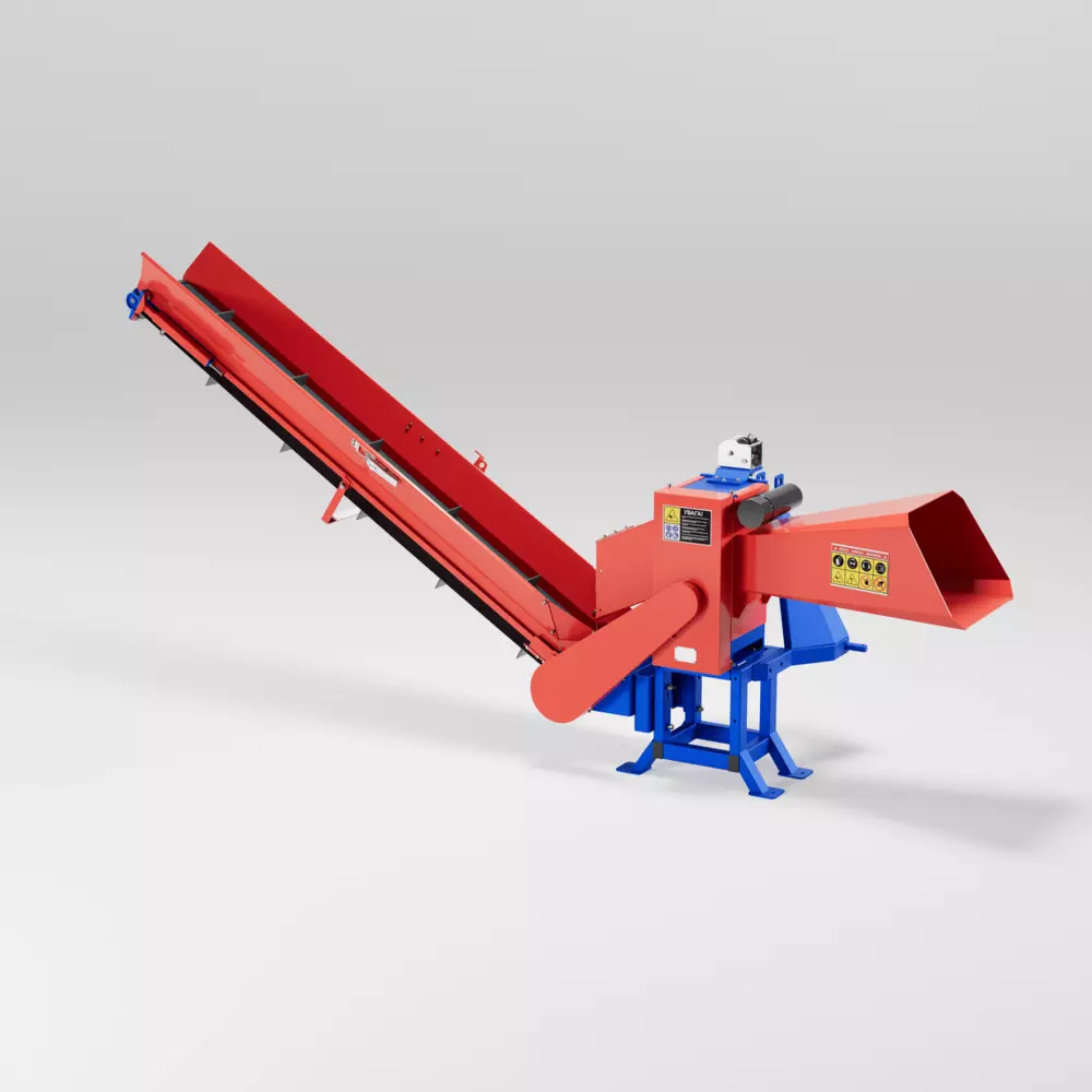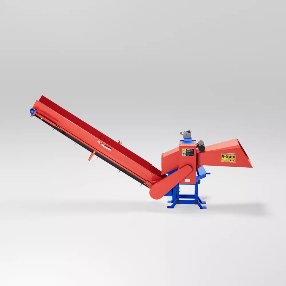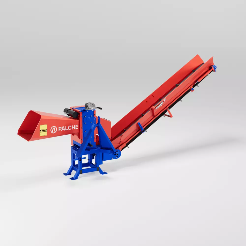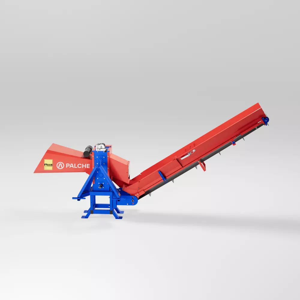 Подрібнювач гілок серії Т приводиться в дію від ВВП трактора і навішується на стандартну трьох точкову навіску. Мінімальна необхідна потужність для роботи із подрібнювачем гілок становить 80 к.с. Подрібнювач гілок моделі PG-120Т-К здатний перерубати гілки м’якої породи діаметром до 12 см, а також гілки твердої породи діаметром до 10 см., (плоского матеріалу) ламелей та рейок до 6 см. Продуктивність подрібнювача гілок PG-120Т-К складає 10 м³ готової продукції за годину роботи. Для з’єднання трактора з подрібнювачем ми рекомендуємо використовувати карданний вал із фрикційною муфтою, яка захищає подрібнювач гілок і трактор від перевантаження. На подрібнювачі серії К встановлена транспортувальна стрічка, за допомогою якої подрібнена сировина може подаватись на причіп вантажного автомобіля, трактора, або в спеціальний контейнер, це дозволяє скоротити час та кількість персоналу, та збільшити продуктивність. Подібне розміщення транспортера буде дуже зручним для комунальних господарств і дорожніх служб. Висота підйому транспортувальної стрічки легко регулюється лебідкою. Подрібнювачі гілок можуть використовуватися лісовими господарствами, комунальними службами, фермерськими господарствами, сільськими, міськими радами і.т.д. Повний цикл виробництва подрібнювача гілок відбувається на нашому підприємстві. Агрегати серії PG оснащені циліндричною системою різання і трьома типами приводів. Конфігурації з шести ножів приділяється особлива увага при розробці конструкцій подрібнювачів, так як вони є основним робочим елементом подрібнювачів і на них приходить ударне навантаження. До того ж сталеві ножі термічно оброблюють задля надання їм міцності, а для безпечної експлуатації вони закриті елементами подрібнювача. Механізм гілкоподрібнювачів автоматично втягує матеріал, який потрібно різати. Ми проводимо контроль якості на всіх етапах нашого виробництва. Обов’язково шліфуються всі посадочні поверхні. Постійно контролюється якість зварних швів. Корпуси механізмів виконані з сертифікованого листа товщиною 20 мм. Перед тим, як провести фарбування, ми робимо зачистку всіх конструкцій. Покриваються подрібнювачі порошковою фарбою, що надзвичайно подовжує термін служби конструкцій. Надійний корпус забезпечує довговічність та стабільність пристроїв. Слід зауважити, що показник продуктивності залежить від діаметру, породи, вологості, якості сировини та кількості персоналу залученого до роботи. Заощаджуйте свої кошти, та використовуйте економне паливо разом з агрегатами TM PALCHE!