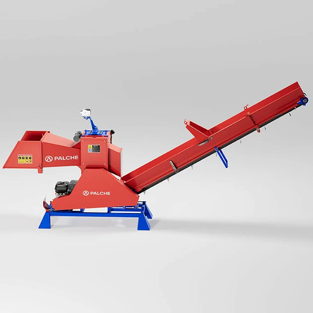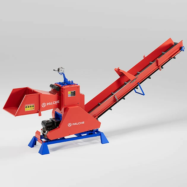 Подрібнювач гілок моделі PG-160BD-К працює від бензинового двигуна, потужністю 29 к.с, що в сумі дає 12 м³ готової продукції за годину. Витрати палива (А-92) складають до 800г/год. На подрібнювачі серії К встановлена транспортувальна стрічка, за допомогою якої подрібнена сировина може подаватись на висоту до 3 метрів відразу на причіп, або кузов вантажного автомобіля, трактора, або в спеціальний контейнер, це дозволяє скоротити час завантаження та кількість персоналу. Слід зауважити, що показник продуктивності залежить від діаметру, породи, вологості, якості сировини, та кількості персоналу залученого до роботи. Подрібнювачі гілок можуть використовуватися лісовими господарствами, комунальними службами, фермерськими господарствами, сільськими, міськими радами і.т.д. Повний цикл виробництва подрібнювача гілок відбувається на нашому підприємстві.