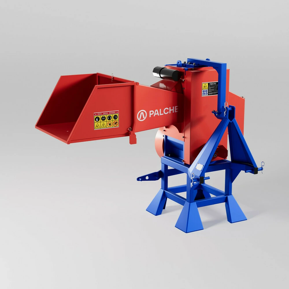Подрібнювачі гілок виробництва ТМ «Palche» призначені для переробки та подрібнення гілок, рейок та інших деревних відходів шляхом рубки на куски довжиною 12-24 см., що ідеальні для використання у якості палива для котлів, печей, камінів, а також для виробництва деревного вугілля. Модель даного подрібнювача PG-160T здатна перерубати гілки м’якої породи деревини діаметром до 16 см, гілки твердої породи діаметром до 14 см., (плоского матеріалу) ламелі та рейки до 8 см. Використання гілкоподрібнювача є найбільш корисним для комунальних служб, деревообробних господарств, лісових господарств, лісопилок, фермерських господарств та приватних осіб (для полегшення процесу заготівлі палива). Подрібнювач гілок серії Т приводиться в дію від ВВП трактора і навішується на стандартну трьох точкову навіску. Мінімальна необхідна потужність трактора для роботи із подрібнювачем гілок становить 80 к.с. Для з’єднання трактора з подрібнювачем ми рекомендуємо використовувати карданний вал із фрикційною муфтою, яка захищає подрібнювач гілок і трактор від перенавантажень. Продуктивність подрібнювача гілок PG-160T складає до 12 м³ готової продукції за годину роботи. Використання гілкоподрібнювача є найбільш корисним для комунальних служб, деревообробних господарств, лісових господарств, лісопилок, фермерських господарств та приватних осіб (для полегшення процесу заготівлі палива). Повний цикл виробництва подрібнювача гілок відбувається на нашому підприємстві. Агрегати оснащені циліндричною системою різання і трьома типами приводів. Конфігурації з шести ножів приділяється особлива увага при розробці конструкцій подрібнювачів, так як вони є основним робочим елементом подрібнювачів і на них приходить ударне навантаження. До того ж сталеві ножі термічно оброблюють задля надання їм міцності, а для безпечної експлуатації вони закриті елементами подрібнювача. Механізм гілкоподрібнювачів автоматично втягує матеріал, який потрібно різати. Ми проводимо контроль якості на всіх етапах нашого виробництва. Обов’язково шліфуються всі посадочні поверхні. Постійно контролюється якість зварних швів. Корпуси механізмів виконані з сертифікованого листа товщиною 20 мм. Перед тим, як провести фарбування, ми робимо зачистку всіх конструкцій. Покриваються подрібнювачі порошковою фарбою, що надзвичайно подовжує термін служби конструкцій. Надійний корпус забезпечує довговічність та стабільність пристроїв. Слід зауважити, що показник продуктивності залежить від діаметру, породи, вологості, якості сировини та кількості персоналу залученого до роботи. Заощаджуйте свої кошти, та використовуйте економне паливо разом з агрегатами TM PALCHE!