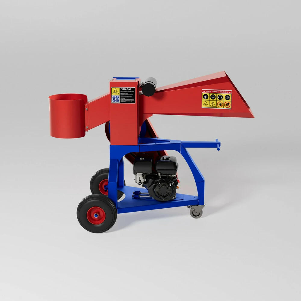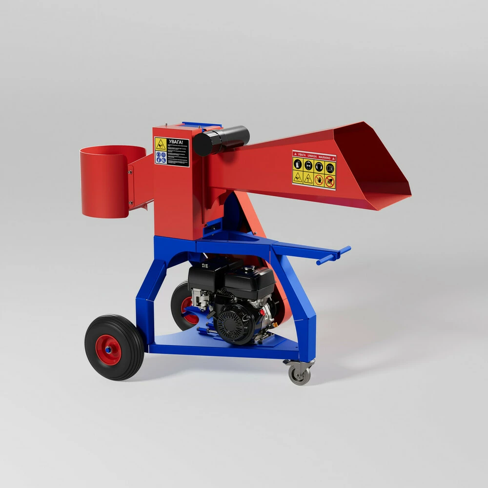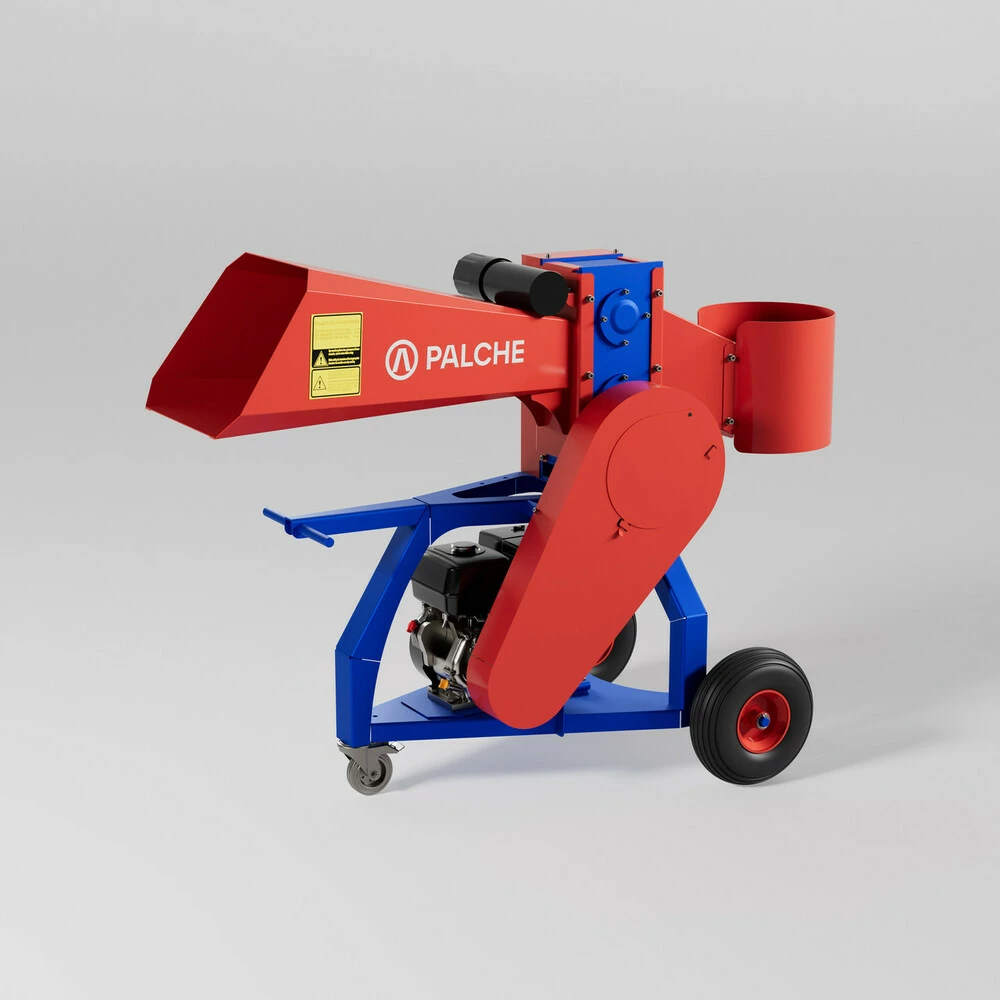 Подрібнювачі гілок виробництва ТМ «Palche» призначені для переробки та подрібнення гілок, рейок та інших деревних відходів шляхом рубки на куски довжиною 6-12 см., що ідеальні для використання у якості палива для котлів, печей, камінів, а також для виробництва деревного вугілля. Модель даного подрібнювача PG-80BD здатна перерубати гілки м’якої породи деревини діаметром до 8 см, гілки твердої породи діаметром до 6,5 см., (плоского матеріалу) ламелі та рейки до 4 см. Використання гілкоподрібнювача є найбільш корисним для комунальних служб, деревообробних господарств, лісових господарств, лісопилок, фермерських господарств та приватних осіб (для полегшення процесу заготівлі палива). Подрібнювач гілок PG-80BD працює від бензинового двигуна потужністю 7 к.с, витрати бензину (А-92) складають до 400г/год, що дає до 4м³ готової продукції. Зручність PG-80BD полягає в незалежності місця розташування (ліс,парк…), відсутності прив’язаності до подачі електроенергії чи наявності трактора. Повний цикл виробництва подрібнювача гілок відбувається на нашому підприємстві. Агрегати серії PG оснащені циліндричною системою різання і трьома типами приводів. Конфігурації з шести ножів приділяється особлива увага при розробці конструкцій подрібнювачів, так як вони є основним робочим елементом подрібнювачів і на них приходить ударне навантаження. До того ж сталеві ножі термічно оброблюють задля надання їм міцності, а для безпечної експлуатації вони закриті елементами подрібнювача. Механізм гілкоподрібнювачів автоматично втягує матеріал, який потрібно різати. Ми проводимо контроль якості на всіх етапах нашого виробництва. Обов’язково шліфуються всі посадочні поверхні. Постійно контролюється якість зварних швів. Корпуси механізмів виконані з сертифікованого листа металу. Перед тим, як провести фарбування, ми робимо зачистку всіх конструкцій. Покриваються подрібнювачі порошковою фарбою, що надзвичайно подовжує термін служби конструкцій. Надійний корпус забезпечує довговічність та стабільність пристроїв. Слід зауважити, що показник продуктивності залежить від діаметру, породи, вологості, якості сировини та кількості персоналу залученого до роботи. Заощаджуйте свої кошти, та використовуйте економне паливо разом з агрегатами TM PALCHE!