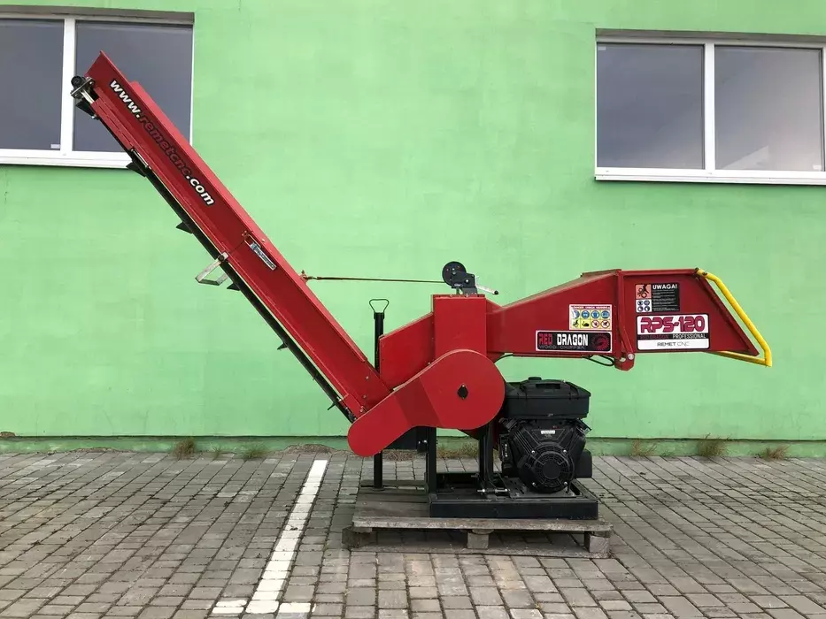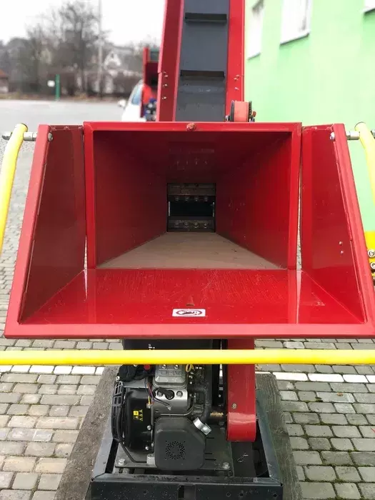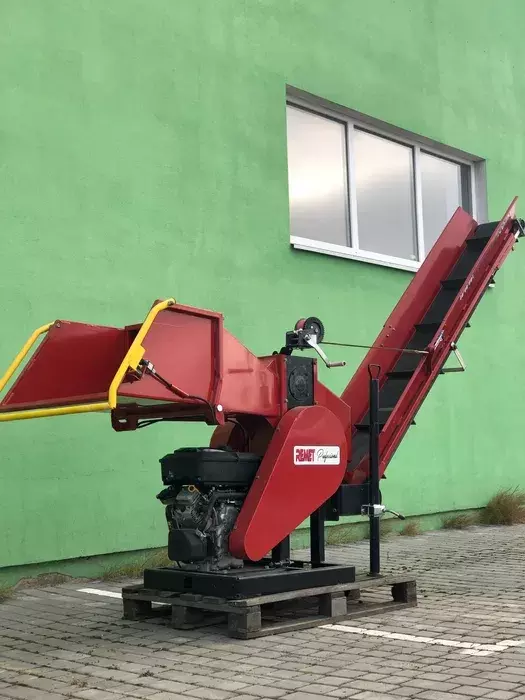 Висувний, подовжений бункер високої жорсткості, посилений профілем. Подрібнювач оснащений запобіжним вимикачем, що оточує бункер, і розгорнутим стрічковим конвеєром з носителями довжиною 2,3 м.