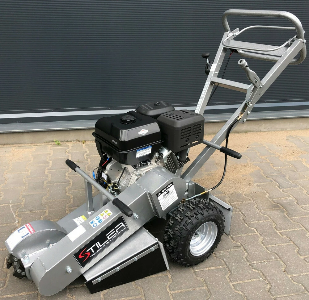 Фрезерний верстат STILER призначений для фрезерування та видалення стволів зрубаних дерев. Фрезерний диск рухається двигуном Briggs & Stratton потужністю 420 см3 і 15 к.с. для адекватної потужності та крутного моменту. Корчувальник дозволяє подрібнювати пень на глибину до 300 мм!